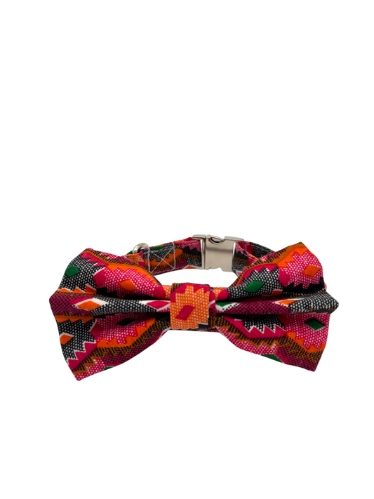 Dog Bow and Collar - Red Dhaka